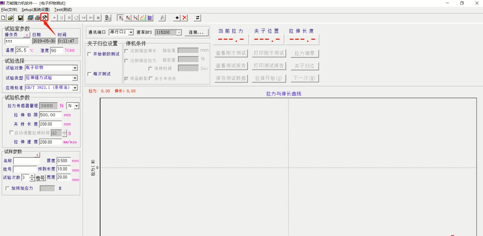 常州市雙固頓達(dá)機(jī)電科技有限公司生產(chǎn)的YG026B型電子織物強(qiáng)力機(jī)是一款電腦軟件操作的強(qiáng)力機(jī),用戶(hù)可以根據(jù)操作步驟自主校準(zhǔn)強(qiáng)力,設(shè)備在使用若干年后覺(jué)得測(cè)試數(shù)據(jù)有偏差時(shí),可以在傳感器下方掛砝碼然后通過(guò)軟件來(lái)校準(zhǔn)儀器,校準(zhǔn)步驟一般可分為以下幾個(gè)步驟: