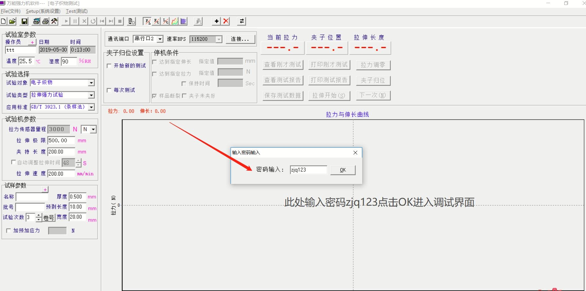 第二步:點(diǎn)擊系統(tǒng)設(shè)置圖標(biāo),在輸入密碼處輸入zjq123后點(diǎn)擊OK進(jìn)入調(diào)試界面。