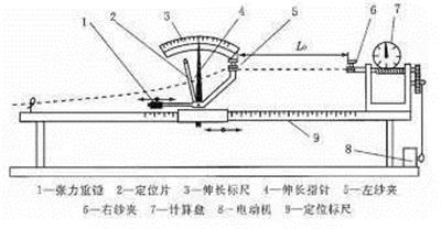 退捻加捻法是假設(shè)在一定張力下,紗線解捻后紗線伸長量與反向加捻時紗線縮短量相同的前提下進行測試的。一個典型的測試裝置如圖所示。