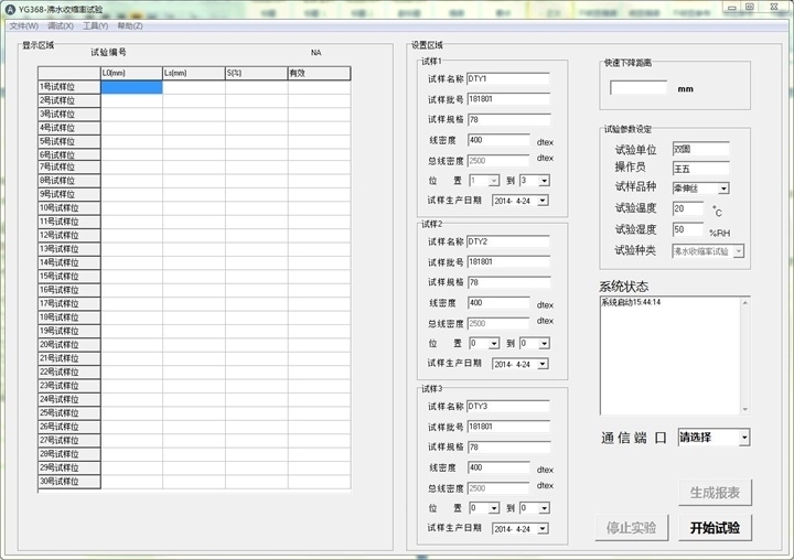 【YG368型長(zhǎng)絲卷縮率測(cè)試儀電腦軟件信息設(shè)置界面】