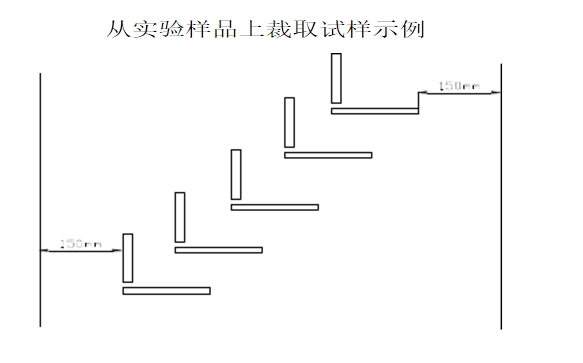 ②.從汽車內(nèi)飾用上裁取兩組試樣,一組為縱向試樣(H),另一組為橫向試樣(Z),試樣尺寸寬度為50mm,長度為240mm,每組至少包括五塊試樣,取樣時在樣品上標(biāo)明縱向(Z)、橫向(H),避免試樣混淆。另加預(yù)備試樣若干。試樣應(yīng)具有代表性,應(yīng)避開褶皺、疵點,試樣距布邊至少150mm,保證試樣均布于樣品上。