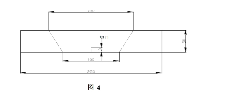 ②.從樣品縱橫向各取寬50mm,長250mm的5塊試樣,按圖3梯形尺寸劃線。