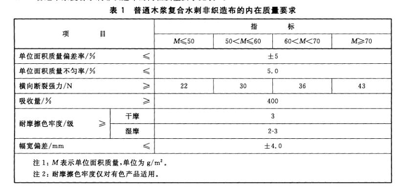 ①.普通木漿復(fù)合水刺無紡布的內(nèi)在質(zhì)量要求