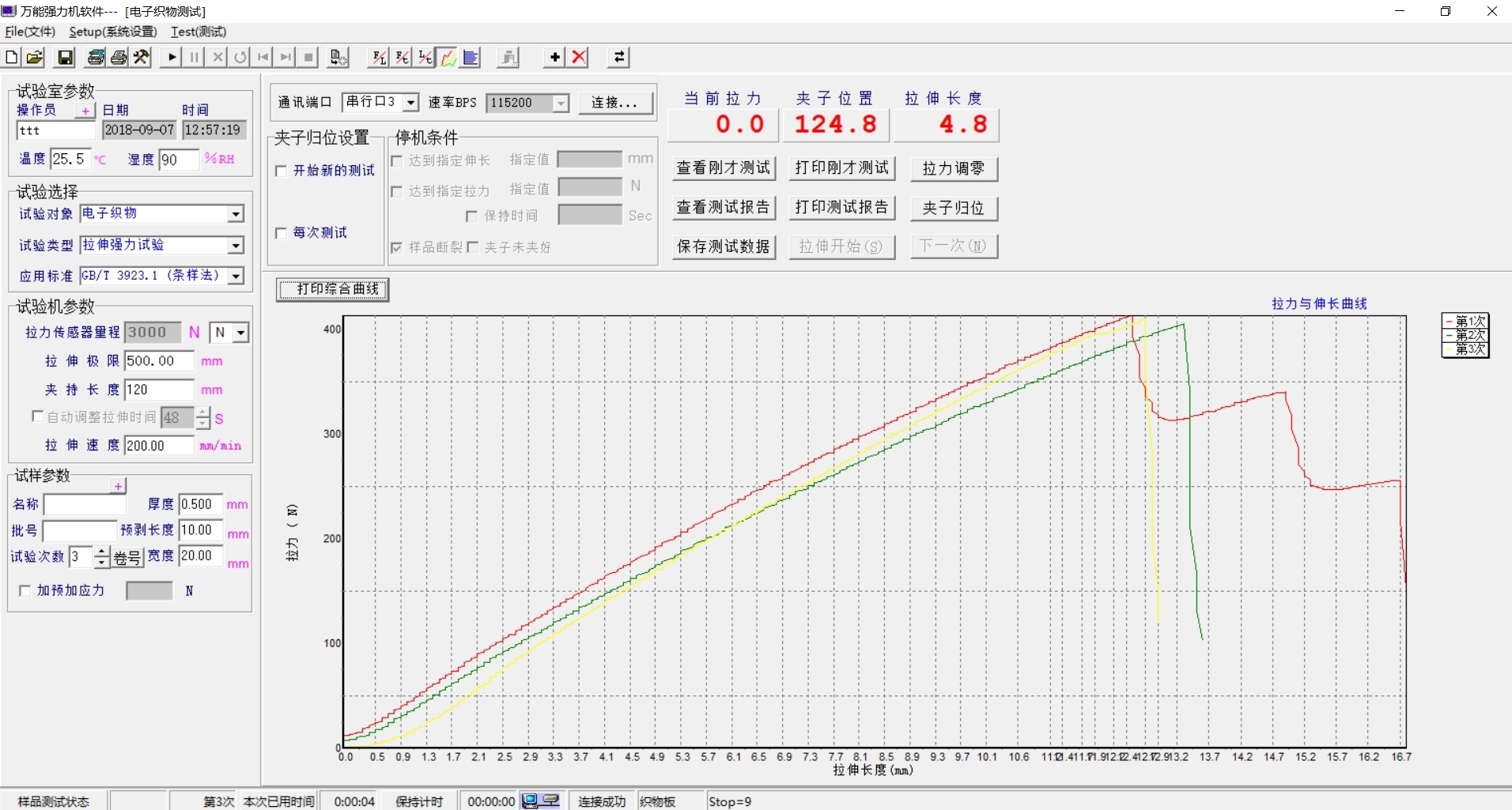 【YG026B型電子織物強力機軟件曲線顯示界面】