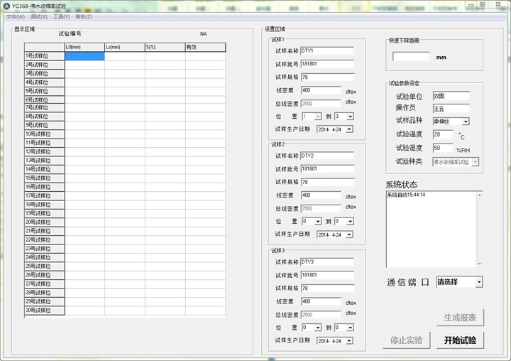 【YG368型全自動(dòng)長(zhǎng)絲卷曲收縮率測(cè)試儀電腦軟件信息設(shè)置界面】